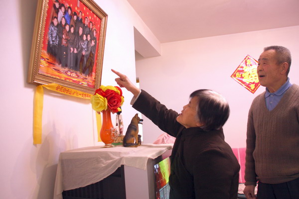 老兩口喜看全家福