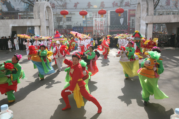 瑞虎騰空去,玉兔踏青來。為了進(jìn)一步活躍礦區(qū)職工群眾文化生活,2月17日上午,銅川礦區(qū)工會選出最具我局特色的工人軍樂隊、行鼓隊、鑼鼓、社火隊等精彩節(jié)目,舉辦了“和諧礦區(qū)、玉兔迎春”社火表演。副局長薛鳴、郭寶輝、封建利,張志文以及局機(jī)關(guān)處室的工作人員都前來觀看了表演。