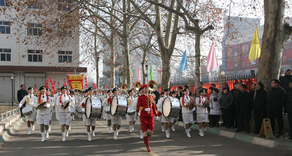 礦區(qū)工會副主席梁桂香宣布表演開始。在震耳的鞭炮聲中,局“三會”描繪的“十二五”宏偉藍(lán)圖仿佛浮現(xiàn)在我們的眼前。伴隨著嘹亮的軍樂,我們的工人軍樂隊威武走來。供應(yīng)處黨政組織在搞好礦井物質(zhì)供應(yīng)工作的同時,注重職工群眾文化團(tuán)體建設(shè),在局黨政的大力支持和扶植下,成立了一支高質(zhì)量、高標(biāo)準(zhǔn)的百人軍樂隊,把軍樂隊作為一種創(chuàng)新,一種文化重點(diǎn)來培養(yǎng),讓職工在學(xué)會“洋器”、掌握本領(lǐng)、展現(xiàn)自我中快樂工作,奉獻(xiàn)企業(yè)。同時提高了人員素質(zhì),享受了美好的生活,充分彰顯了我局企業(yè)文化建設(shè)的成果,為我局贏得了榮譽(yù)。