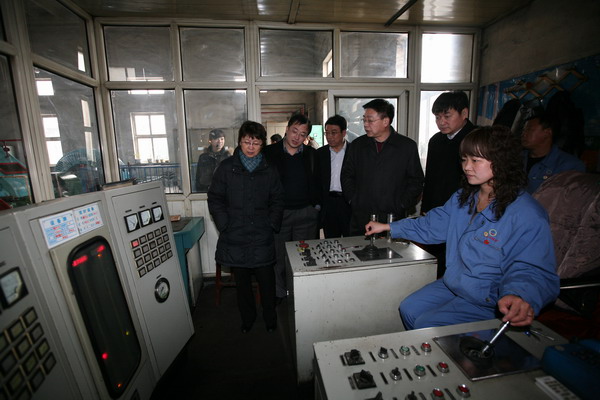 副總經(jīng)理薛鳴、封建利陪同省證監(jiān)局副局長(zhǎng)趙瑩一行到王石凹礦調(diào)度室檢查