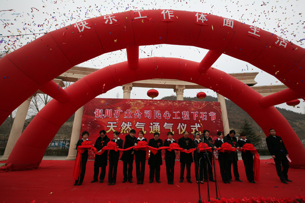 1月25日,朔風(fēng)凜冽,寒氣逼人,而下石節(jié)礦十里礦區(qū)卻是一片彩旗飄揚(yáng),鑼鼓喧天的火熱景象。原來,今天是該礦舉行天然氣通氣典禮儀式的好日子。銅川礦務(wù)局局長(zhǎng)宋志剛、黨委副書記、常務(wù)副局長(zhǎng)黃河、副局長(zhǎng)郭寶輝、副局長(zhǎng)封建利、銅川市燃?xì)夤究偨?jīng)理陳紀(jì)睿等領(lǐng)導(dǎo)不畏嚴(yán)寒,遠(yuǎn)道而來,與下石節(jié)礦廣大職工家一起見證了這一鼓舞人心的時(shí)刻。