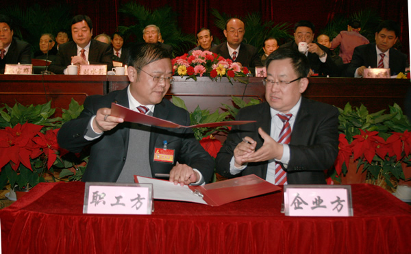 局長宋志剛和礦區(qū)工會副主席何玉璽在會上分別代表企業(yè)和職工方簽訂了公司(局)2011年度《工資集體合同》