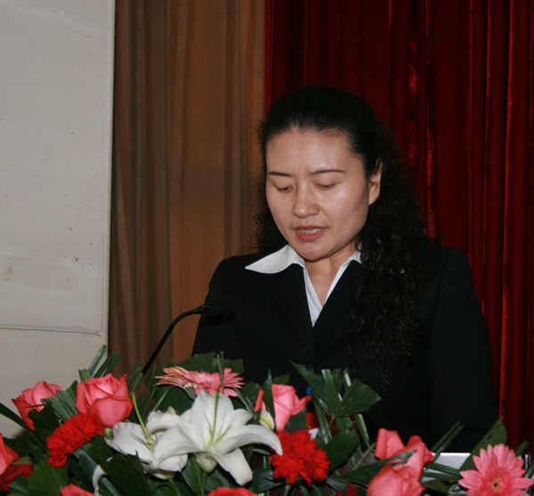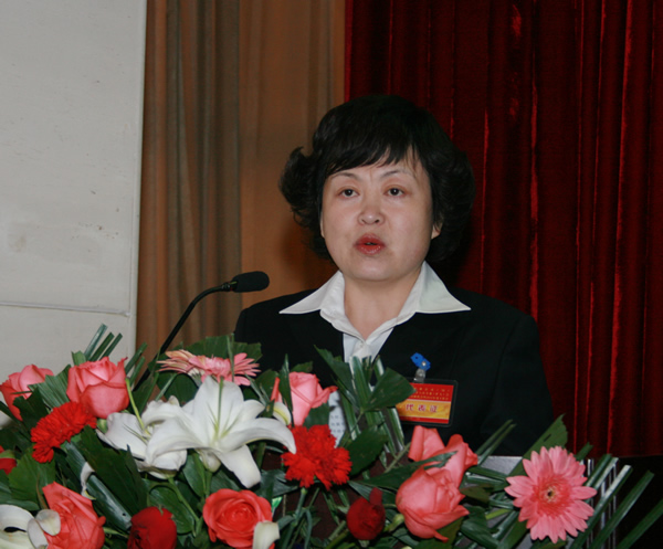 女工主任翟永霞在作關(guān)于協(xié)商簽訂《工作集體合同》的說明