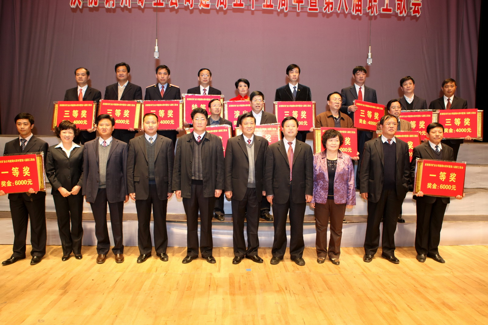 公司黨委副書記、紀(jì)委書記張志文為一等獎獲獎單位頒獎并合影