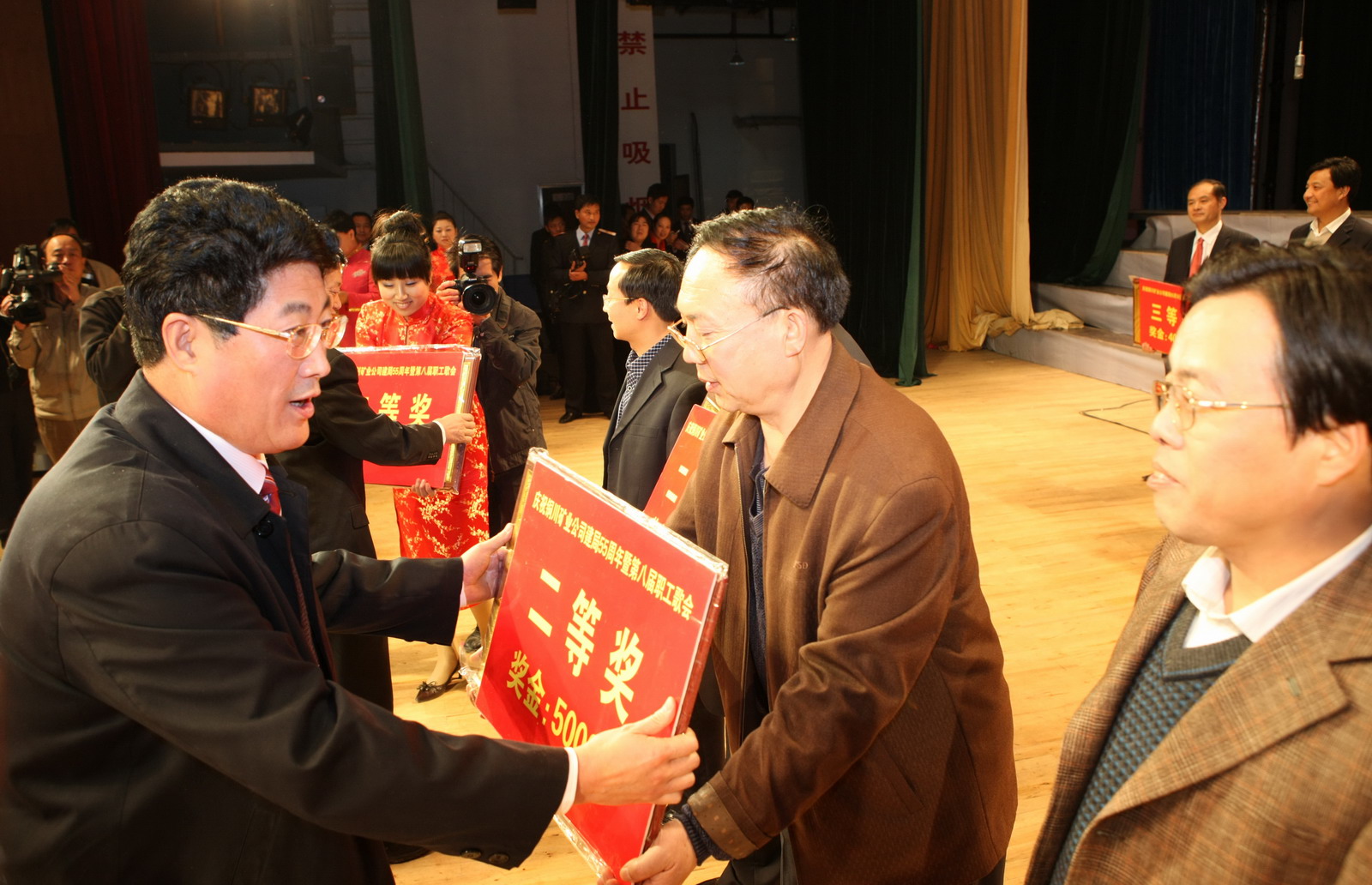在職工歌會上,第一個出場的是礦業(yè)公司機(jī)關(guān)代表隊(duì),他們陣容整齊,英姿颯爽,局領(lǐng)導(dǎo)張志文、郭寶輝等參加演出。他們演唱了《礦業(yè)公司司歌》和《江山》,嘹亮的歌聲贏來了掌聲一片。隨后,徐家溝公司、工業(yè)技術(shù)學(xué)院、機(jī)電公司和各礦井等代表隊(duì)依次以強(qiáng)大的陣容展示了各自的風(fēng)采。雖然都是合唱,但其風(fēng)格各有千秋,演出中間配有朗誦、領(lǐng)唱,在比賽合唱的同時,大屏幕上播放有各單位獨(dú)具特色的企業(yè)文化專題片,供觀眾們同時欣賞,使廣大觀眾們欣賞到了一場別開生面的文化盛宴。此次歌會同時邀請了我市音樂界資深的評委現(xiàn)場打分,現(xiàn)場亮分。經(jīng)過評比,供應(yīng)處、王石凹礦奪得歌會大賽一等獎,玉華礦、機(jī)電公司、工業(yè)技術(shù)學(xué)院和鴨口煤礦有限責(zé)任公司榮獲二等獎,下石節(jié)礦等6個單位獲得三等獎。公司老年大學(xué)被授予演出獎,機(jī)關(guān)代表隊(duì)榮獲特等獎。與會公司領(lǐng)導(dǎo)為獲獎單位現(xiàn)場頒發(fā)了獎牌和獎金。