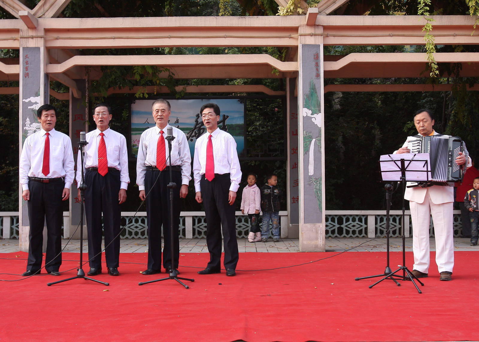 老年大學(xué)藝術(shù)班表演的男生小合唱《伊犁河的月夜》