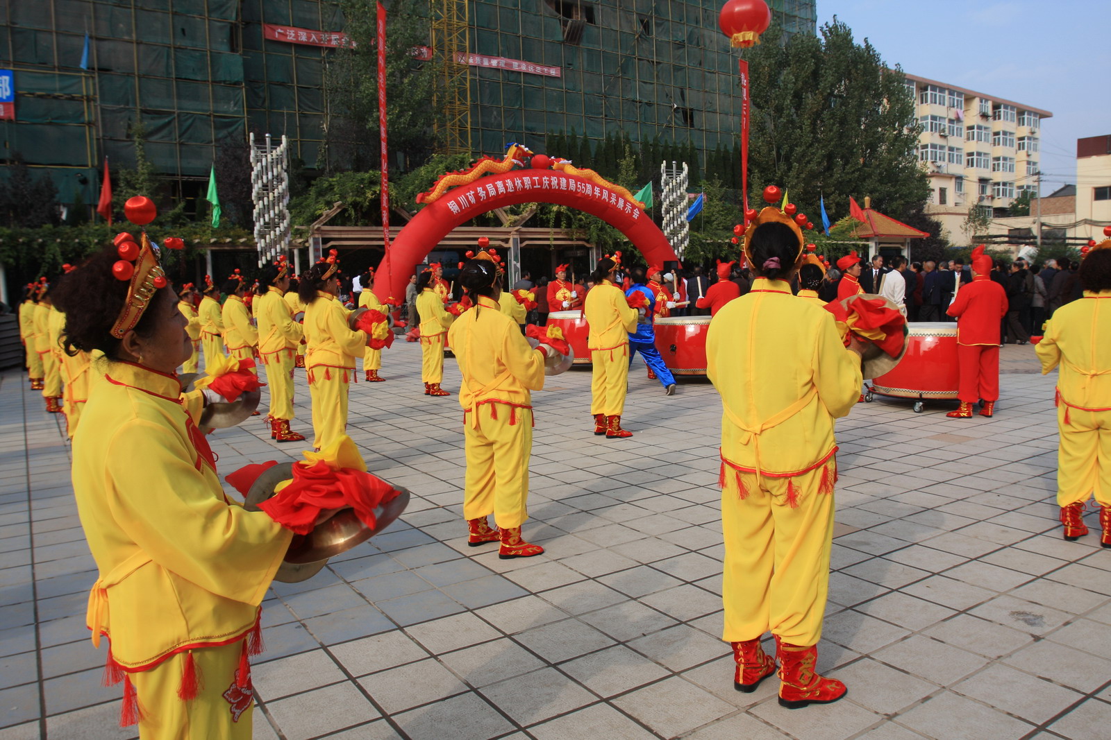 桃園社區(qū)威風(fēng)鑼鼓為離退休職工慶祝建局55周年風(fēng)采展示會(huì)臨陣助威