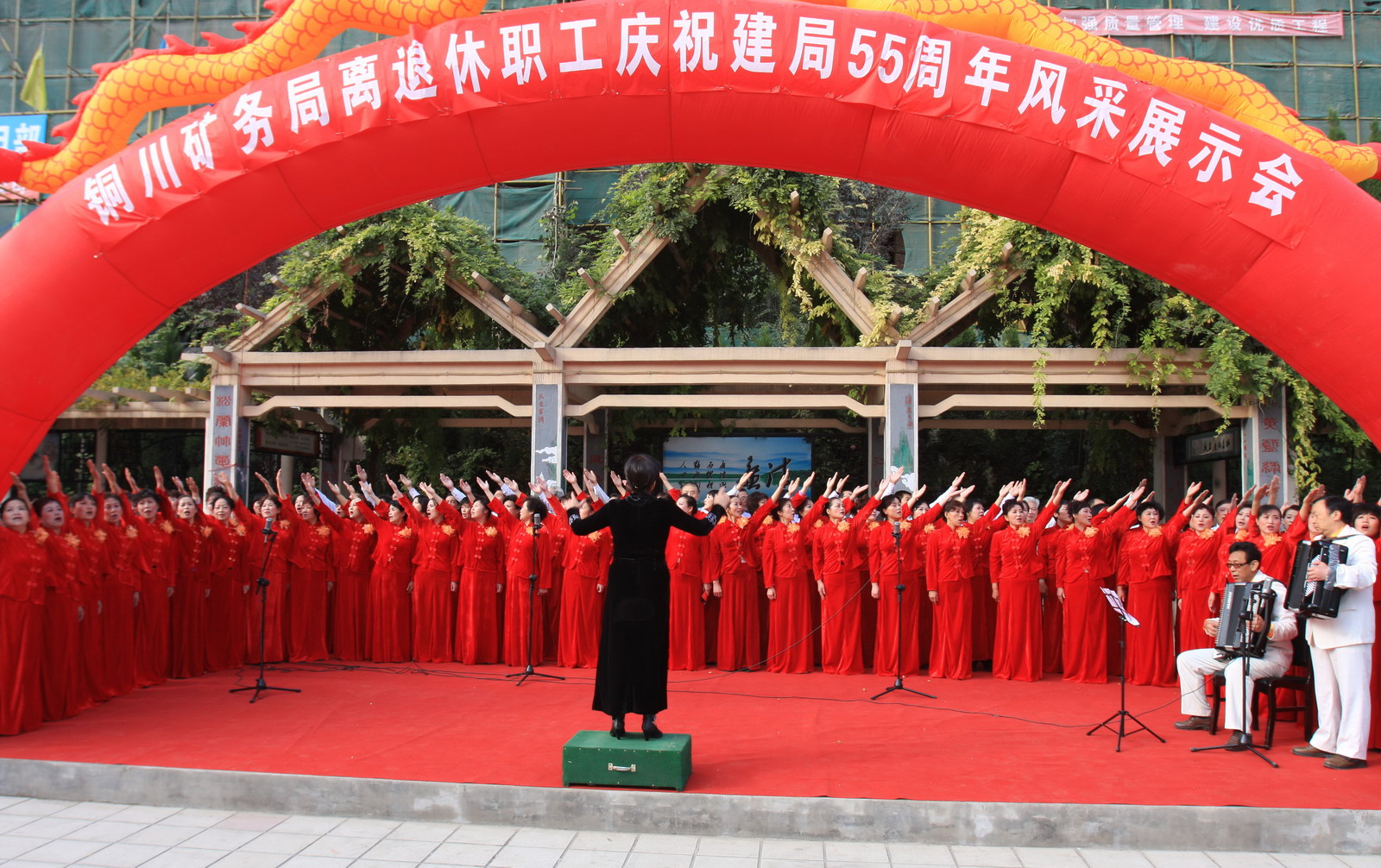 10月27日下午,由局老齡委主辦的銅川礦務(wù)局離退休職工慶祝建局55周年風(fēng)采展示系列活動(dòng)在供應(yīng)處新和廣場(chǎng)拉開序幕。局黨委副書記、紀(jì)委書記張志文、副局長郭寶輝,局離退休處、干部處、供應(yīng)處、干休所、桃園社區(qū)、礦工報(bào)社等單位領(lǐng)導(dǎo)和離退休職工家屬上千人觀看了演出。