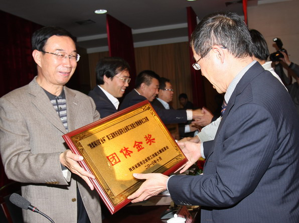 有關(guān)領(lǐng)導(dǎo)頒發(fā)團(tuán)體金獎(jiǎng)
