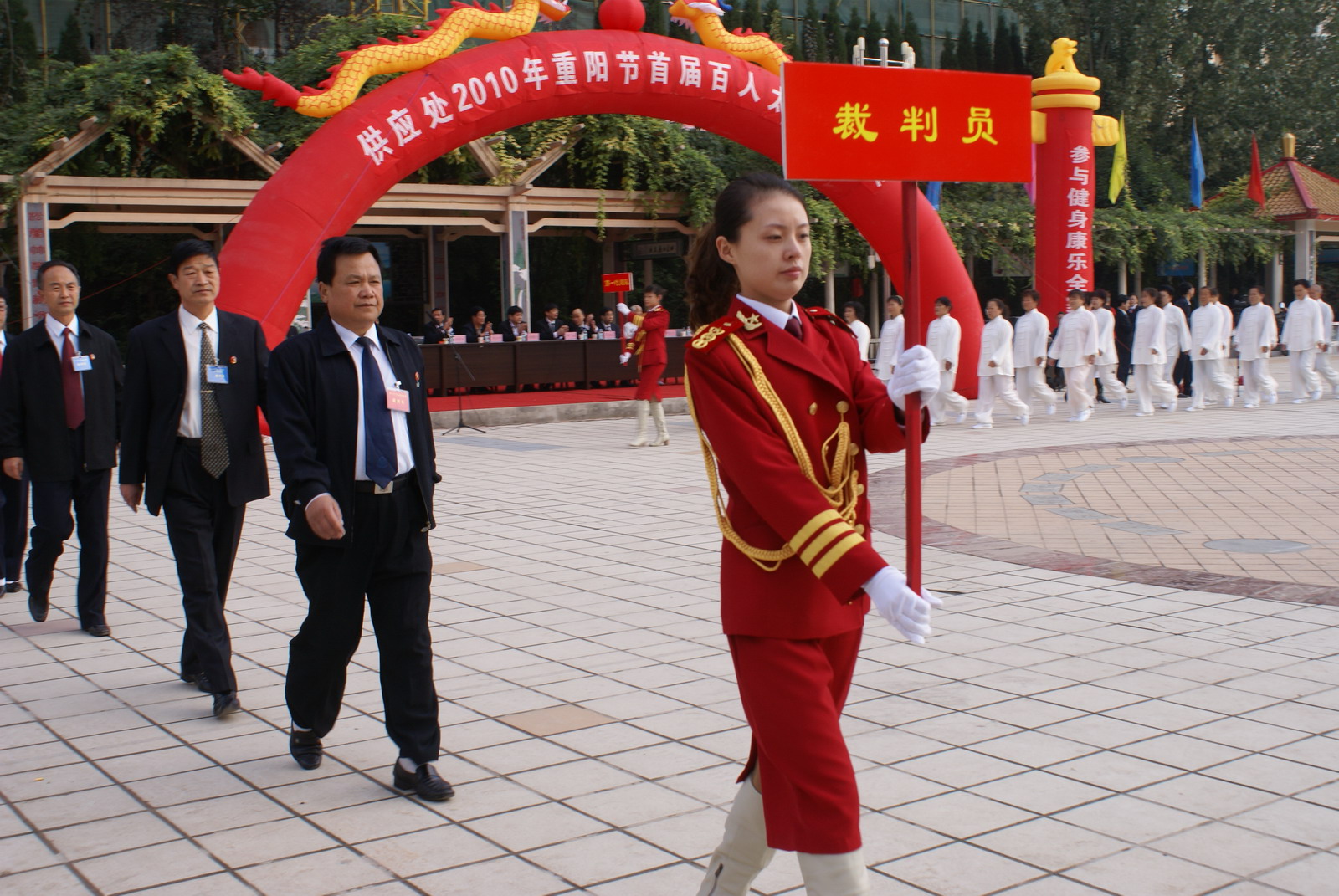 比賽活動儀式上,供應(yīng)處處長郜鵬發(fā)表了熱情洋溢的講話,運動員代表張文遠、裁判員代表李來印分別代表運動員和裁判員進行宣誓。約9時許,處黨委書記索富安宣布“供應(yīng)處2010年重陽節(jié)首屆百人太極拳健身比賽正式開始”。比賽活動儀式由副處長蒙志超主持。
