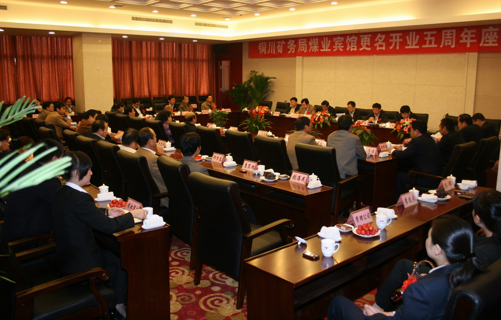 會(huì)上,局辦公室主任強(qiáng)建民首先致賀詞;煤業(yè)賓館總經(jīng)理侯繼峰作工作匯報(bào)。與會(huì)的局副總、各處室、部門、單位負(fù)責(zé)人等來賓圍繞煤業(yè)賓館五年來的工作和發(fā)展變化進(jìn)行了熱烈的座談發(fā)言;虹橋分局、陜西旅游飯店管理有限責(zé)任公司領(lǐng)導(dǎo),副局長封建利、郭寶輝、劉水利等在會(huì)上分別講話,對煤業(yè)賓館更名開業(yè)五周年表示祝賀,充分肯定煤業(yè)賓館五年來的工作和成績,并為煤業(yè)賓館今后的發(fā)展提出了許多好的意見和建議。