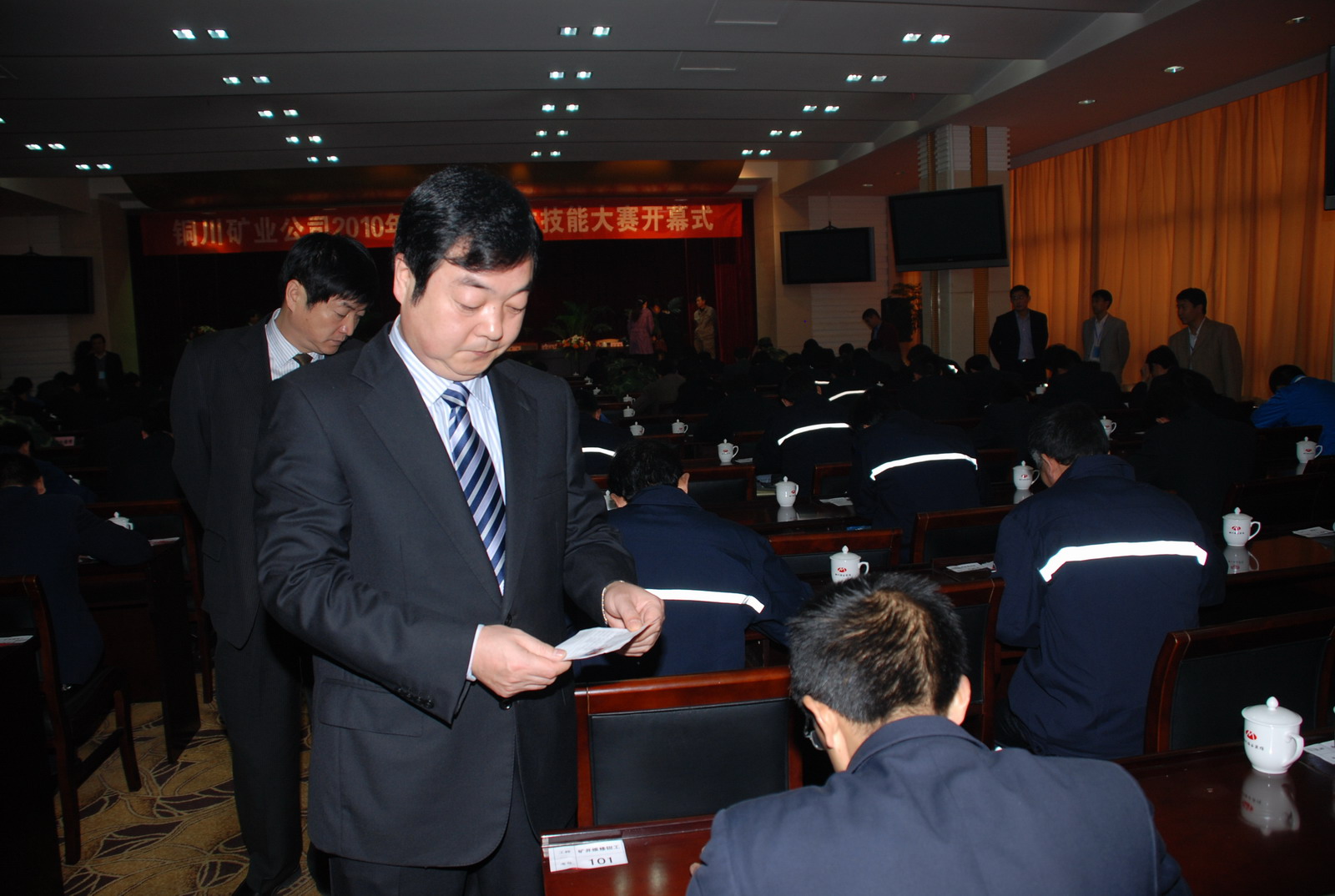 10月21日上午,礦業(yè)公司2010年度職工崗位技能大賽在煤業(yè)賓館拉開帷幕。公司黨政領(lǐng)導(dǎo)宋志剛、杜樹山、張志文、黃河、劉水利、苑京敏、封建利等出席,礦區(qū)工會主席張仿文主持了開幕儀式。各礦井黨政負(fù)責(zé)人、工會主席、公司機(jī)關(guān)相關(guān)處室負(fù)責(zé)人和參賽選手等230余人參加了開幕式。