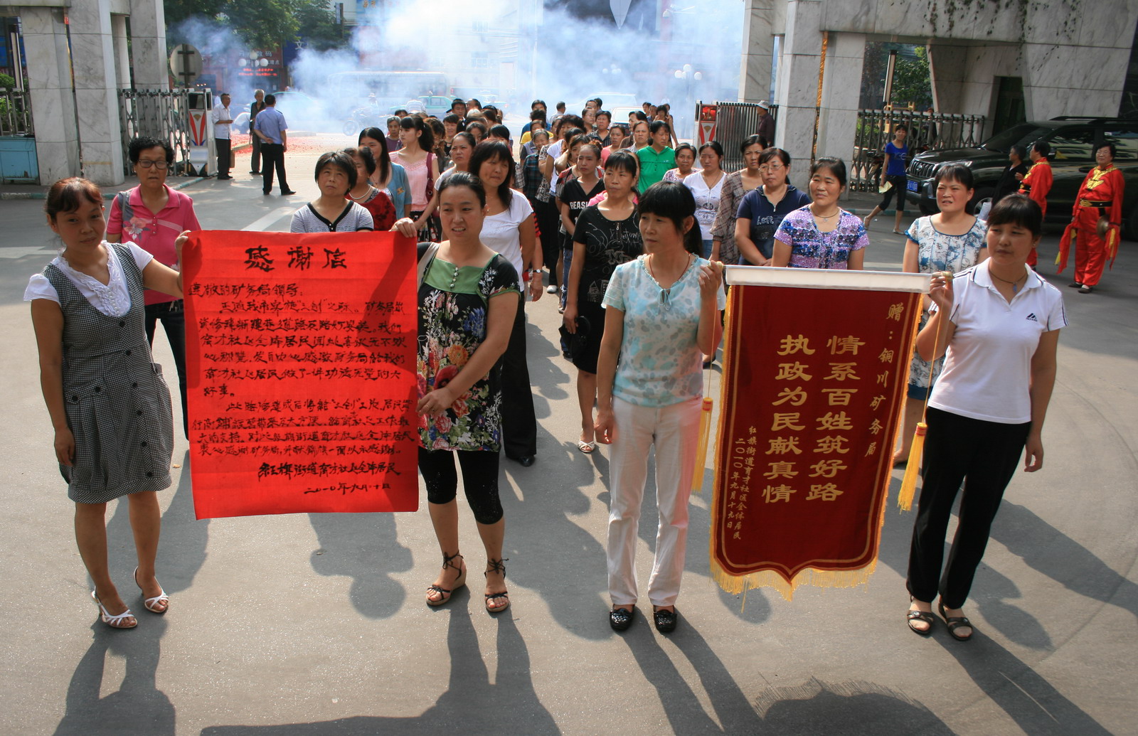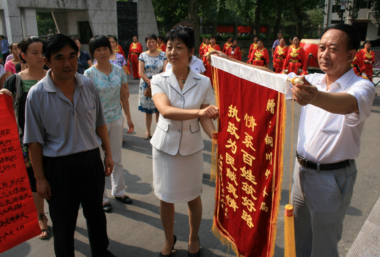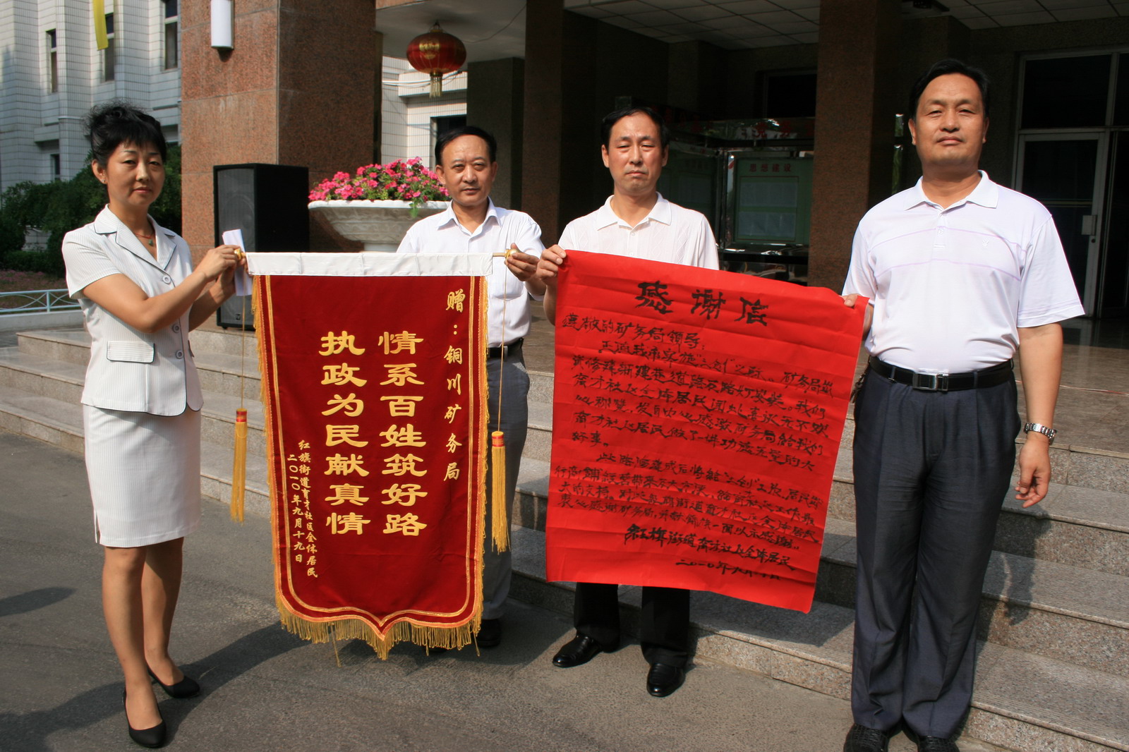 9月20日上午,局機(jī)關(guān)大院鑼鼓喧天,鞭炮齊鳴,熱鬧非常。銅川市王益區(qū)紅旗街育才社區(qū)數(shù)百名群眾手捧感謝信和寫(xiě)有“情系百姓筑好路,執(zhí)政為民顯真情”字樣的鮮紅錦旗,滿懷喜悅地來(lái)到礦務(wù)局機(jī)關(guān)大院,感謝局黨政替老百姓著想,投資修建年久失修、關(guān)系民生的新建巷道路。