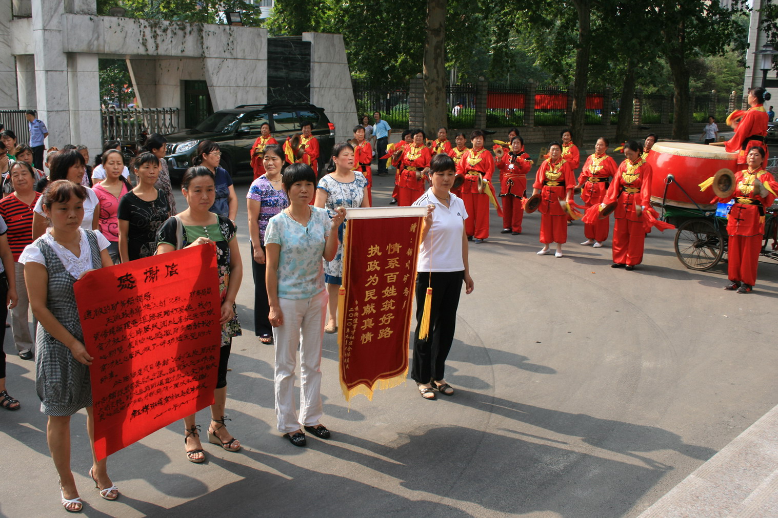 群眾自發(fā)捧著感謝信和錦旗敲鑼打鼓來(lái)到局機(jī)關(guān)大院