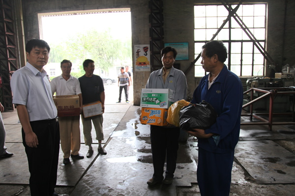 8月18日,副局長封建利在奧博集團(tuán)總經(jīng)理黃麗華和黨委副書記孫祥春陪同下,再次到奧博集團(tuán)楓樺公司、西安川普公司和西安恒豐公司,為一線員工送去了礦泉水、茶葉、傘等降溫用品,并深入車間進(jìn)行生產(chǎn)調(diào)研,了解產(chǎn)品的銷售及新產(chǎn)品水性環(huán)氧抗污磁漆和水性抗靜電磁漆的推廣情況。在奧博集團(tuán)開展的炎炎夏日送清涼活動中,副局長封建利前期已深入華峰公司和西安銅霖公司慰問一線員工。