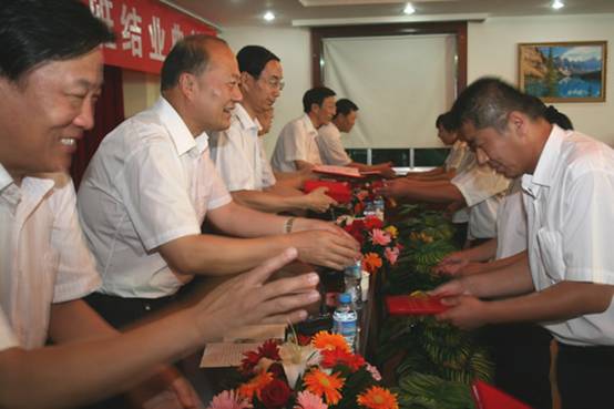 與會領導優(yōu)秀班干部、優(yōu)秀學員和全體學員頒發(fā)榮譽證書和結業(yè)證書