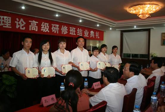 公司黨委副書記、局長宋志剛主持典禮。陜西師范大學教師干部教育學院院長袁奮光作了熱情洋溢的講話。公司黨委副書記李志科宣讀了政治理論高級研修班優(yōu)秀班干部和優(yōu)秀學員名單。與會領導分別向優(yōu)秀班干部、優(yōu)秀學員和全體學員頒發(fā)了榮譽證書和結業(yè)證書。學員代表李琳作了表態(tài)發(fā)言。