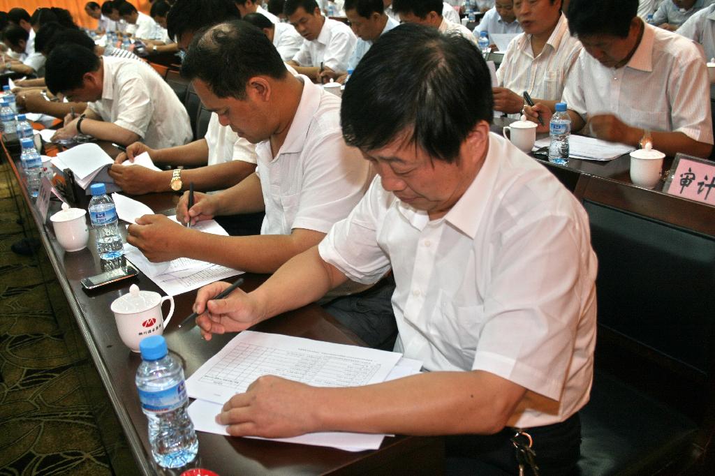 與會(huì)干部認(rèn)真填寫測(cè)評(píng)表和推薦表