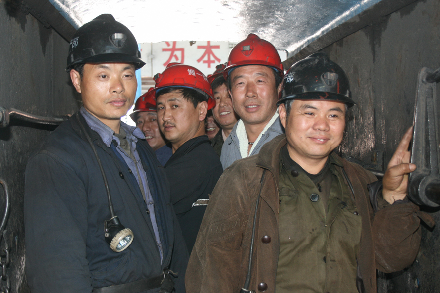 職工班后在井下侯罐室等待升井