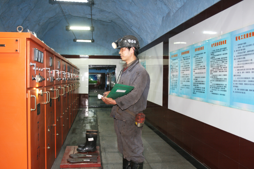 工作人員在井下二水平中央變電所工作