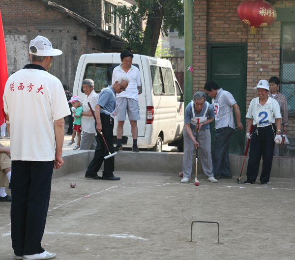 此時(shí)烈日炎炎,氣溫在35度左右。但是,惡劣的天氣檔不住老同志們的比賽熱情,三里洞隊(duì)參賽隊(duì)員有的從西安專程趕回來(lái)參加這次比賽,王石凹隊(duì)的老同志們提前一天來(lái)到了比賽現(xiàn)場(chǎng)練球、熟悉場(chǎng)地,晚上在沒(méi)有比賽的情況下老同志們?nèi)匀粊?lái)到場(chǎng)地進(jìn)行訓(xùn)練。煤技校隊(duì)是這次比賽平均年齡最大的隊(duì)伍,但是他們頑強(qiáng)拼搏,發(fā)揚(yáng)老驥伏櫪,志在千里的精神,賽出了風(fēng)格,賽出了友誼;史家河社區(qū)發(fā)揚(yáng)東道主的精神,熱情接待參賽隊(duì)友,設(shè)立急救站,密切關(guān)心老同志的身體狀況,每天提供優(yōu)良的后勤服務(wù),受到了各參賽隊(duì)的好評(píng)。
