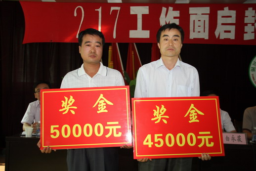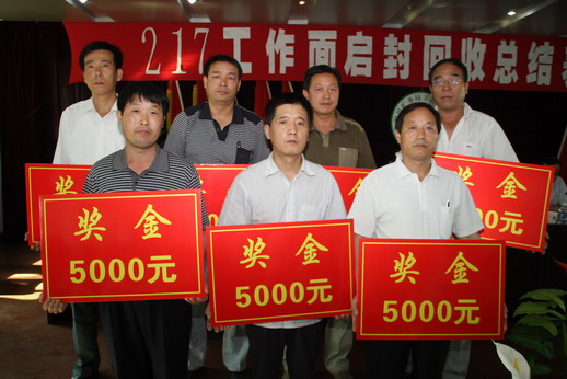 該礦自去年對217工作面實(shí)施封閉后,廣大干部職工認(rèn)真吸取事故教訓(xùn),始終牢固樹立“安全為天”的思想,全力以赴抓好安全工作。在217工作面封閉7個(gè)月后,通過各項(xiàng)數(shù)據(jù)檢測,于5月1日正式開始排水啟封。為了保證啟封工作安全、高效、順利進(jìn)行,各相關(guān)部門、單位的干部職工做了大量富有成效的工作,礦成立了工作面排水啟封暨回收指揮部,由礦領(lǐng)導(dǎo)擔(dān)任總指揮、副總指揮,分管生產(chǎn)的副總工程師、生產(chǎn)科室的主管領(lǐng)導(dǎo)擔(dān)任成員,進(jìn)行了職責(zé)劃分,制定了措施及要求,提出了獎(jiǎng)罰標(biāo)準(zhǔn);生產(chǎn)科、動(dòng)力科、通防科等相關(guān)職能科室專門制定了詳細(xì)的工作安排;機(jī)電車間在217運(yùn)順安設(shè)了水泵、管路等排水設(shè)施;監(jiān)測中心在排水點(diǎn)和回順安設(shè)了瓦斯、一氧化碳、溫度探頭等裝置;通維區(qū)在運(yùn)順和回順安設(shè)了風(fēng)機(jī)、風(fēng)筒、風(fēng)門等通風(fēng)設(shè)施;維修隊(duì)、掘一隊(duì)、掘二隊(duì)、運(yùn)輸區(qū)等單位對回收出架系統(tǒng)和運(yùn)輸系統(tǒng)進(jìn)行了全面維修;此時(shí)全礦干部職工心往一處想,勁往一處使,團(tuán)結(jié)奮戰(zhàn),為217綜采工作面啟封回收工作有序進(jìn)行奠定了堅(jiān)實(shí)基礎(chǔ)。排水 5月1日,217工作面正式開始排水,啟封回收工作正式拉開序幕。當(dāng)天,礦領(lǐng)導(dǎo)就立即開始分為三班現(xiàn)場跟班指揮,堅(jiān)持按值班輪流表24小時(shí)值班,值班礦領(lǐng)導(dǎo)負(fù)責(zé)召開217工作面排水啟封跟班人員三班班前會(huì),協(xié)調(diào)處理值班期間的各項(xiàng)工作,并于每晚7點(diǎn)30分召開工作協(xié)調(diào)會(huì),總結(jié)當(dāng)日工作,協(xié)調(diào)解決排水過程中出現(xiàn)的各種問題,安排第二天的具體工作。在排水期間,礦領(lǐng)導(dǎo)和各科室主要領(lǐng)導(dǎo)都自發(fā)取消了休息日,放棄了休假,按時(shí)參加班前會(huì)、調(diào)度會(huì)和協(xié)調(diào)會(huì),積極深入現(xiàn)場,隨時(shí)隨地掌握進(jìn)展情況,遇到問題及時(shí)協(xié)調(diào)處理。有的領(lǐng)導(dǎo)和科室人中幾乎天天下井,有的一升井顧不得休息,又來到辦公室研究安排工作,副總工程師霍小泉同志,自217工作面開始排水以來,每天吃、住都在辦公室,幾乎沒有回過家,井下出現(xiàn)問題,隨時(shí)下井處理。掘進(jìn)二隊(duì)班長張建安、于軍峰,職工楊占軍、居兵華,機(jī)電車間班長王宏亮、王金星,職工李無杰、廉德軍等同志,在排水期間也都堅(jiān)持出滿勤、干滿點(diǎn),任勞任怨,連續(xù)作戰(zhàn)。6月8日,工作面的水基本排完。全礦廣大干部職工連續(xù)奮戰(zhàn)39天,排水23萬立方米,有力推動(dòng)了217工作面的順利啟封回收。啟封經(jīng)過13天的卸壓排水,5月14日,217運(yùn)順開始破閉啟封。根據(jù)前期測量分析,工作面的瓦斯?jié)舛冗_(dá)80%以上,并有大量的氮?dú)狻楸WC啟封回收期間的“一通三防”安全,副礦長、總工程師岳東、副礦長趙永勝、副總工程師陳俊社等同志,多次組織技術(shù)人員召開專題會(huì)議,研究制定方案及措施,并親自深入現(xiàn)場指導(dǎo)瓦斯排放工作。并專門抽調(diào)救護(hù)隊(duì)承擔(dān)此次破閉任務(wù),救護(hù)隊(duì)小隊(duì)長袁文茂、胡偉帶領(lǐng)隊(duì)員閆龍龍、趙希金等同志,克服了墻體厚、硬度大的不利因素,圓滿完成了破閉任務(wù),閉墻被破開后,工作面瓦斯已降到0.1%左右。運(yùn)順閉墻破開后,機(jī)電車間班長范貴嶺、姬文忠?guī)ьI(lǐng)職工魏志勝、代同旭等同志,迅速將水泵移入閉墻以里,繼續(xù)加緊排水。5月20日,217回順成功的實(shí)施了破閉啟封。5月26日,217運(yùn)順突然來壓,頂板大面積冒落,水泵無法繼續(xù)前移,掘進(jìn)二隊(duì)班長張宏偉、王維居帶領(lǐng)職工孫庸武、蘆中雨等同志,立即跳入冰冷的水中,用手挖、人背的方式清理水中的煤和雜物,由于積水較深,有的地方水深達(dá)到腰部,加之水中的雜物較多,干部職工的膠靴都被掛破了,全身都被泡濕了,就這樣,他們一干就是一個(gè)班,沒有一個(gè)人發(fā)出一句怨言。6月4日,工作面在眾多干部職工的共同努力下形成全負(fù)壓通風(fēng)?;厥?6月9日,217工作面正式開始回收支架。綜采隊(duì)在保證218工作面正常生產(chǎn)的情況下,抽調(diào)班長葉堂慶、武治岐、職工王元林、劉占民、張軍紅等精兵強(qiáng)將參與回收工作。副礦長張學(xué)政同志早上八點(diǎn)下井,親自到現(xiàn)場指揮回收工作,直到6月10日零點(diǎn),第一號支架順利升井后,張礦長才升井,在井下連續(xù)工作了16個(gè)小時(shí)。當(dāng)工作面2號支架撤出后,老空區(qū)出現(xiàn)了冒落,回收工作受阻,安全督導(dǎo)員丁聯(lián)合同志得知后,立即下井來到現(xiàn)場,要求停止回收,加強(qiáng)支護(hù),清理浮煤,他雖然身患糖尿病,卻一直盯在現(xiàn)場監(jiān)督安全,直到6月11日凌晨1點(diǎn)才升井。在此期間,運(yùn)輸區(qū)、運(yùn)轉(zhuǎn)隊(duì)、供應(yīng)科、調(diào)度室、地測科等單位密切配合、通力協(xié)作,保證了回收工作的順利進(jìn)行。告捷 6月19日,在廣大干部職工的共同努力下, 217工作面的設(shè)備全
