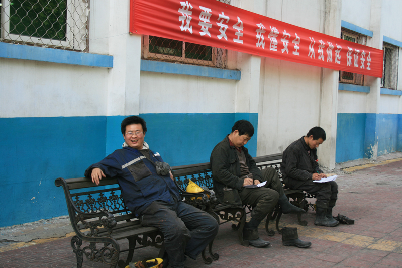 70歲的退休老礦工何云相組織老伙計們在礦區(qū)監(jiān)督衛(wèi)生保潔工作。誰要是順手扔點果皮紙屑什么的,他們可要上去厲害幾句,把“創(chuàng)衛(wèi)靠大家”的道理講清楚并要其做出不再就犯的保證才讓走人。何師傅下了20多年井,從來沒受過傷。根據(jù)自己的經(jīng)驗,他組織9位退休老工人每周定期到井口給入井工人講安全注意事項。退休工人劉天順有一門理發(fā)手藝,退休后,堅持義務(wù)給下井工人理發(fā)。家委會的姐妹們,輪流到井口給入井的工人送茶水,提醒注意安全。 礦區(qū)人是淳樸的,不管是領(lǐng)導(dǎo)還是群眾,面對記者“是否滿足”的提問,回答是一樣的:第一我們希望工資更高;第二希望人人住上新樓房,三五年進駐新區(qū)的“棚戶區(qū)改造集中地”。