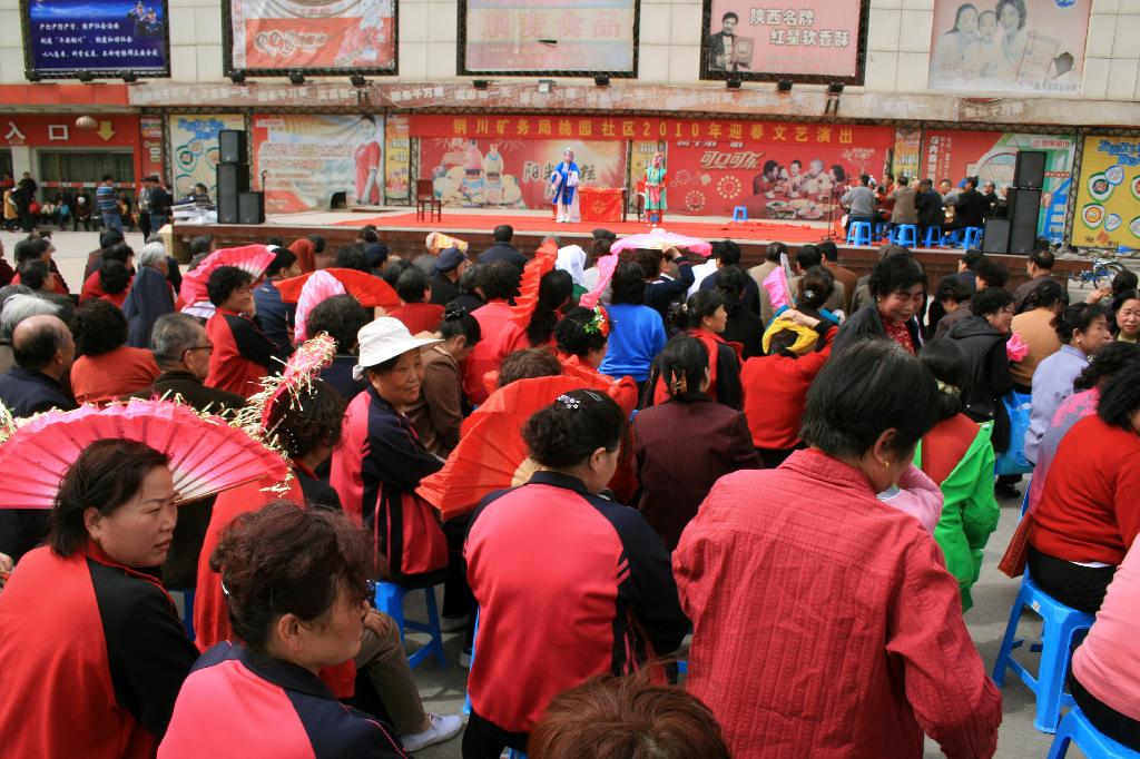 經(jīng)過充分準(zhǔn)備后,3月18日、19日,由離退休人員上演的桃園社區(qū)迎新春文藝演出在銅川北市區(qū)華天商業(yè)廣場與廣大市民見面。為了搞好演出,離退休老同志演員提前化妝,樂隊(duì)及早準(zhǔn)備,社區(qū)腰鼓隊(duì)、秧歌隊(duì)前來助興,臺(tái)下社區(qū)準(zhǔn)備的凳子座無虛席,有的戲迷還自帶小凳,礦區(qū)工會(huì)主席張仿文、礦業(yè)公司有關(guān)部門領(lǐng)導(dǎo)、桃園社區(qū)干部職工等數(shù)千人觀看了演出。演員的精彩表演,委婉的唱腔,樂隊(duì)動(dòng)聽的演奏,不時(shí)搏得大家的掌聲和歡笑聲。桃園社區(qū)開展的多項(xiàng)文化娛樂活動(dòng)已形成群眾性的活動(dòng)氛圍,成為銅川礦區(qū)的一大亮點(diǎn),促進(jìn)了礦區(qū)的和諧、穩(wěn)定,深受廣大職工群眾和市民的青睞。