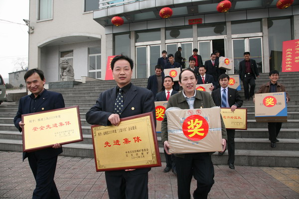 礦黨政領(lǐng)導(dǎo)給模范六好區(qū)隊獎勵電腦
