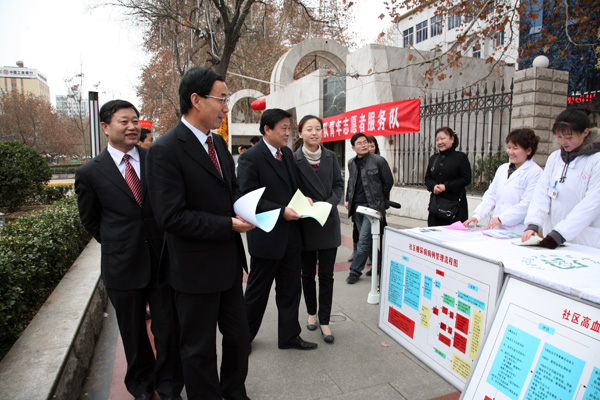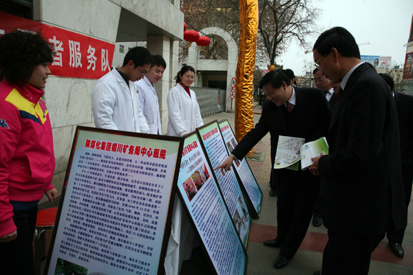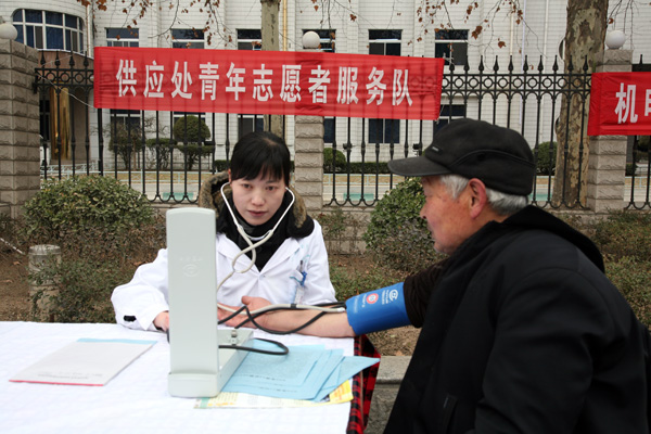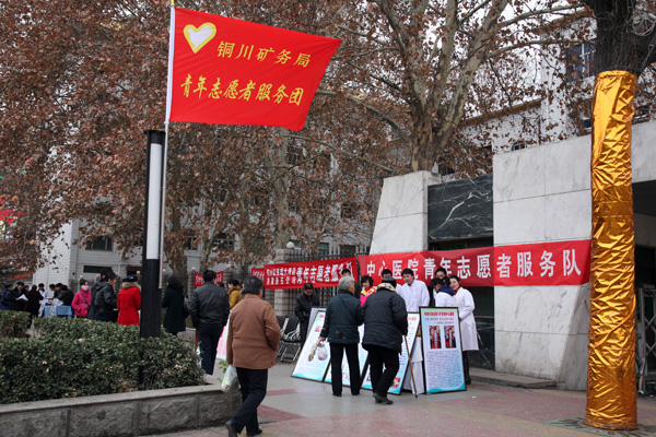 團旗、青年志愿者旗,隨風(fēng)飄揚,局大門電子屏上滾動播放著“雷鋒天天在身邊,團旗飄揚在礦山”、“服務(wù)社會學(xué)雷鋒,立足崗位樹新風(fēng)”等宣傳標(biāo)語,鮮艷奪目,鼓舞人心。在局大門兩側(cè)廣場上,青年志愿者設(shè)立了10余個服務(wù)點,青年志愿者們結(jié)合自己的崗位特點和專業(yè)特長,為全局職工家屬和廣大市民提供了煤礦安全知識宣傳、塵肺病防治知識宣傳、節(jié)能減排、飲食健康、安全技能培訓(xùn)、家電維修、焊補鍋盆、測量血壓、甲流預(yù)防、醫(yī)保咨詢等10余種特色服務(wù)項目,發(fā)放了企業(yè)文化理念、安全知識、衛(wèi)生保健的傳單3000余份。學(xué)雷鋒青年志愿者活動的開展,得到了各級領(lǐng)導(dǎo)的重視和支持。活動期間,局黨委書記杜樹山,局黨委副書記、紀(jì)委書記張志文,礦區(qū)工會主席張仿文和局黨群各部門負(fù)責(zé)人以及團市委領(lǐng)導(dǎo)在局團委副書記孔艷的陪同下,親臨活動現(xiàn)場進行了指導(dǎo)和慰問,并給予了較高評價,認(rèn)為今年的學(xué)雷鋒活動做到了內(nèi)容新、形式活、氣氛濃,達到了倡樹新風(fēng)、服務(wù)大眾的目的。