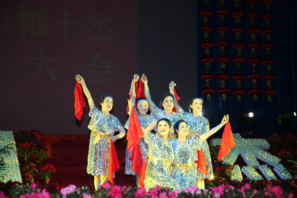 此次演出既有我們職工自編自演的節(jié)目,也有特邀專業(yè)藝術團體的節(jié)目,有獨唱、舞蹈、豫劇、女聲小合唱等。其中,歌曲《天路》、舞蹈《千手觀音》、豫劇《朝陽溝》等很受觀眾喜,贏得掌聲一片。我局職工自編自演的節(jié)目舞蹈《陽光季節(jié)》、由基層女工主任演唱的《同一首歌》、音樂舞蹈快板《巾幗業(yè)績匯精彩》等深受觀眾青睞。其中《巾幗業(yè)績匯精彩》還成為壓軸戲,其內(nèi)容是把所表彰的十位巾幗十杰的事跡用快板帶舞蹈的形式表現(xiàn)出來,道出了每一位受表彰者的特點和工作業(yè)績,從說詞到唱段朗朗上口,不矯揉造作,是真情的流露,讓人耳目一新。演出暨頒獎結(jié)束后,局領導杜樹山、宋志剛等與演職人員合影留念。
