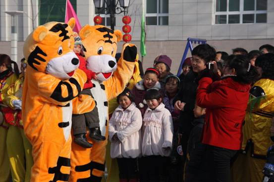 此次表演共有五個(gè)部分組成,分別是:威武雄壯、氣概豪邁的威風(fēng)鑼鼓;如一支支彩蝶翩翩起舞的秧歌表演;象征著求實(shí)、創(chuàng)新、團(tuán)結(jié)、奉獻(xiàn)企業(yè)精神的舞龍表演;吶喊著青春、彰顯著蓬勃生機(jī)的女子腰鼓;帶著黃土氣息,體現(xiàn)渭北煤海人豪放的舞獅表演。最能讓人眼前一亮的是那兩只活潑可愛的虎娃吉祥物,他一會(huì)兒穿梭于表演隊(duì)伍之間,做出各種可愛的動(dòng)作,一會(huì)兒鉆進(jìn)人群與孩子們歡鬧,引得大家不時(shí)發(fā)出陣陣歡笑,紛紛與他合影留念。最后,舞獅隊(duì)表演的獅子拜年、雙獅爭(zhēng)寵、獅子飛天、獅子翻身、獅子鬧春等高難動(dòng)作,將演出推向了高潮,贏得了職工家屬的一片掌聲。大家紛紛踏著喜悅的節(jié)拍,伴著陣陣的炮竹聲,情不自禁扭動(dòng)起來,共同感受這和諧美好的新春氛圍。