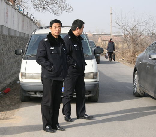 保衛(wèi)處人員正在認(rèn)真執(zhí)勤,保證道路暢通工作