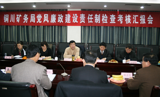 當天上午,由吳衛(wèi)平書記主持,在煤業(yè)賓館三號樓二樓會議室召開了檢查考核匯報會。會上,局黨委書記杜樹山首先簡要介紹了我局09年以來的工作總體情況,局黨委副書記、紀委書記張志文代表局黨政就局黨政領導班子2009年落實黨風廉政建設責任制情況作了專題匯報。匯報會后,考核組還分頭查看了我局有關執(zhí)行黨風廉政建設責任制目標、任務和措施的落實情況及相關資料,召開了職工代表座談會,聽取職工的意見、建議,并進行了民主測評。