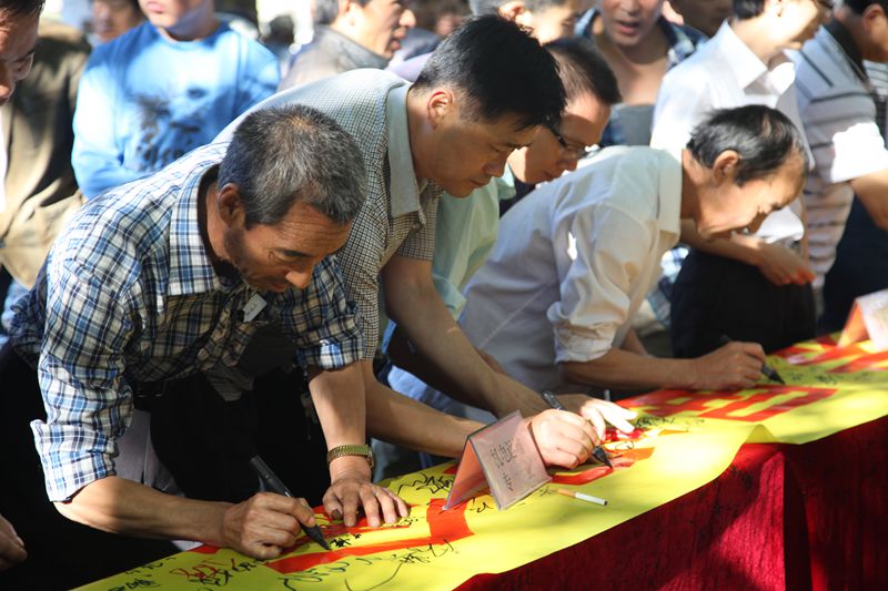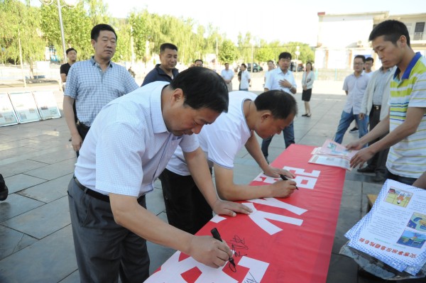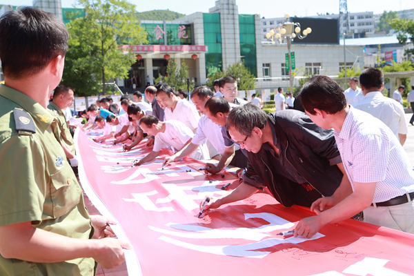 王石凹礦黨政領導和150余名職工家屬集體進行了安全宣誓,并在題有“強化安全發(fā)展觀念,提升全民安全素質”的橫幅上鄭重的簽上了自己的名字。