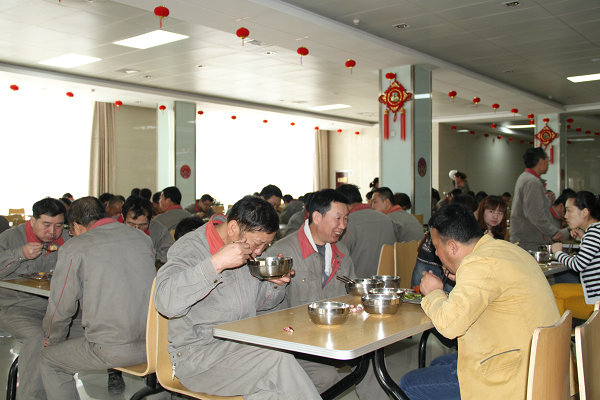 走進(jìn)職工宿舍,大家坐滿一屋,如見到久別重逢的老友,畢竟都是銅川人,攀談起來,無拘無束,感覺格外親切。從大家的表情和精神狀態(tài)來看,感覺對這個企業(yè)還是比較滿意的。有的說,剛來到這里,不怎么適應(yīng),總是想家?,F(xiàn)在好了,覺得礦上有個家,這里是新家,企業(yè)是我們工作的地方,我們62名在這里創(chuàng)業(yè)的兄弟是一個大家庭。有的說,這里的領(lǐng)導(dǎo)對我們和對他們的職工一樣,待遇同等,每月都有生活補(bǔ)貼,吃飯都到食堂刷卡吃飯,飯菜便宜,比較實(shí)惠。素菜三到四元一份,肉菜五元一份,都能吃飽。有的說,工余時間,我們可以到運(yùn)動中心打羽毛球、乒乓球、籃球等鍛煉身體,還有各種健身器材供職工使用,游泳館也對職工開放,豐富了業(yè)余生活。這里共有幾百名職工,有的雖不熟悉,但時間久了,見面都打招呼,親如一家。