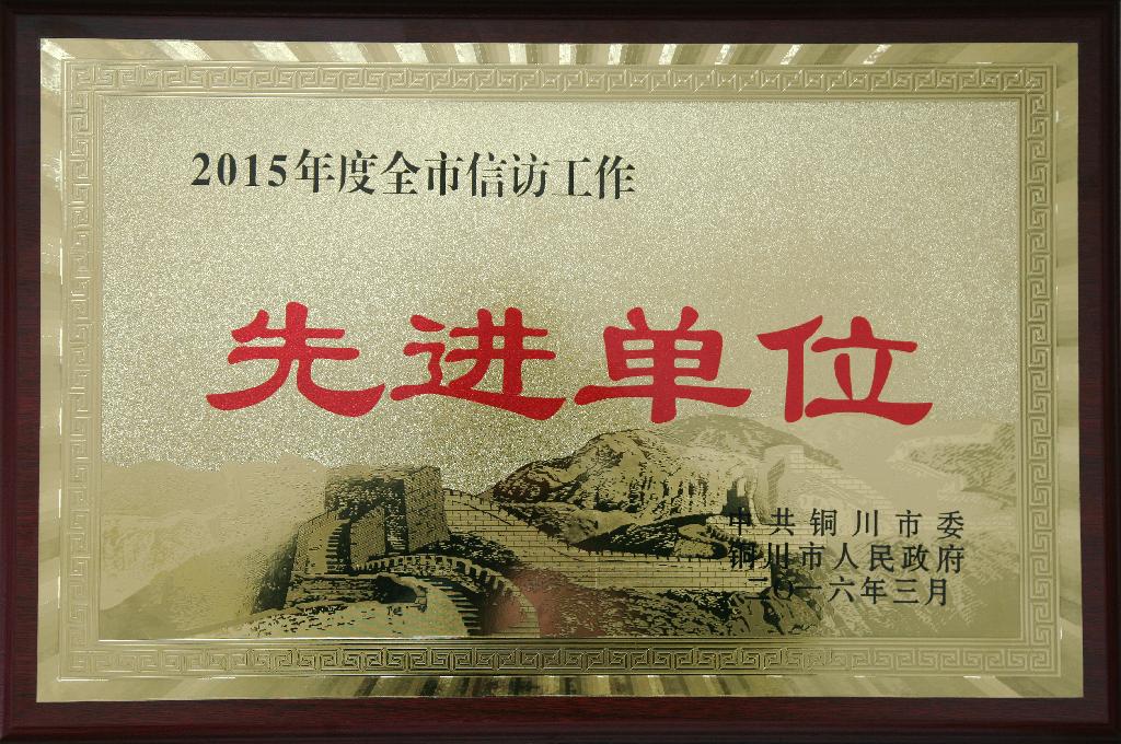 近日,在銅川市信訪工作會(huì)上,公司被銅川市委、市政府授予2015年度信訪工作先進(jìn)單位,這也是繼2013年以來(lái),公司連續(xù)三年獲得此殊榮。