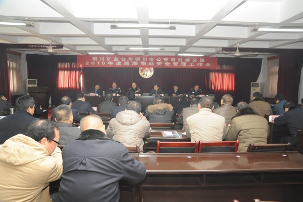 1月27日上午,銅川礦業(yè)公司、銅川市公安局虹橋分局2016年度民爆物品安全管理工作現(xiàn)場會在陳家山礦召開。公司常務副總經(jīng)理、安監(jiān)局長劉水利,銅川市公安局治安支隊支隊長景宏亮,虹橋分局黨委書記、局長侯小同,公司相關部室責任人、涉爆單位的法人代表、安監(jiān)處長、火工辦主任、保衛(wèi)科長,以及虹橋分局各涉爆派出所所長,共50余人參加了會議。