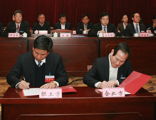 下午16時30分,公司常務(wù)副總經(jīng)理、安監(jiān)局長劉水利主持召開全體代表大會。會上,企業(yè)方代表與職工方代表簽訂了公司2016年度《工資集體合同》,表決通過了大會決議。