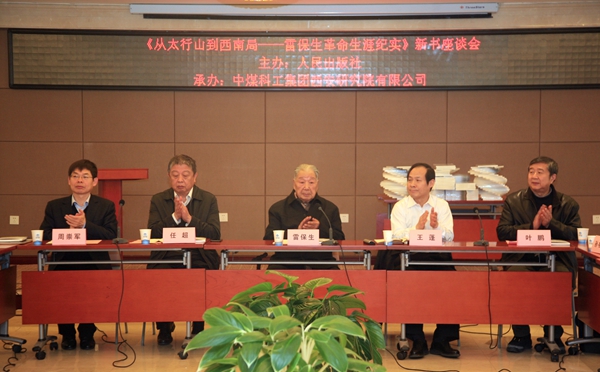12月18日,《從太行山到西南局——雷保生革命生涯紀(jì)實(shí)》新書座談會在中煤科工集團(tuán)西安研究院舉行。銅川市委原常委、原銅川礦務(wù)局黨委副書記雷保生,人民出版社常務(wù)副社長任超,政治編輯一部主任張振明,發(fā)行部主任許艷麗,本書作者作家葉鵬,中煤科工集團(tuán)西安研究院黨委副書記、紀(jì)委書記、工會主席周崇軍,公司黨委書記、執(zhí)行董事王蓬,黨委副書記、工會主席劉啟科出席座談會,銅川礦業(yè)公司、西安研究院有關(guān)部室和單位負(fù)責(zé)人以及雷保生同志子女親友參加了座談會。