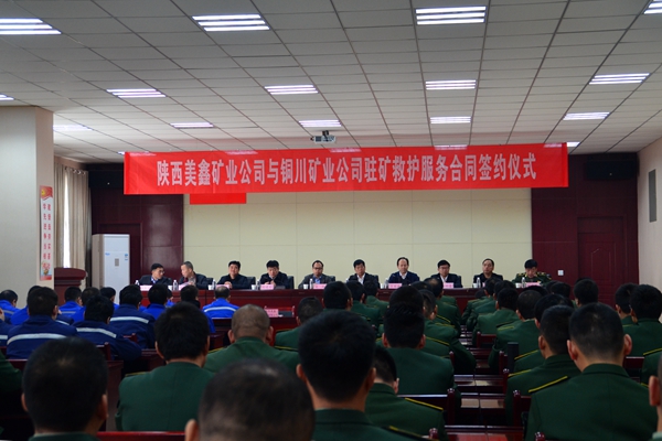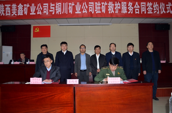 3月10日上午,公司礦山救護(hù)大隊與陜西美鑫礦業(yè)公司駐礦救護(hù)服務(wù)合同簽約儀式在礦山救護(hù)大隊六樓會議室舉行。陜煤集團(tuán)煤炭事業(yè)部副經(jīng)理、陜煤股份副總工程師歸會林,陜西有色金屬控股集團(tuán)公司安環(huán)部關(guān)凱,陜西美鑫產(chǎn)業(yè)投資公司總經(jīng)理封建利、副總經(jīng)理、總工程師元勝利、總經(jīng)理助理、綜合辦主任池遠(yuǎn)宏、陜西美鑫產(chǎn)業(yè)投資公司安全環(huán)境管理部主任孟祥輯、陜西美鑫礦業(yè)公司總經(jīng)理郭百強,銅川礦業(yè)公司總會計師萬軍鋒出席簽字儀式,公司救護(hù)大隊、陜西美鑫礦業(yè)公司干部職工代表90余人參加簽約儀式。