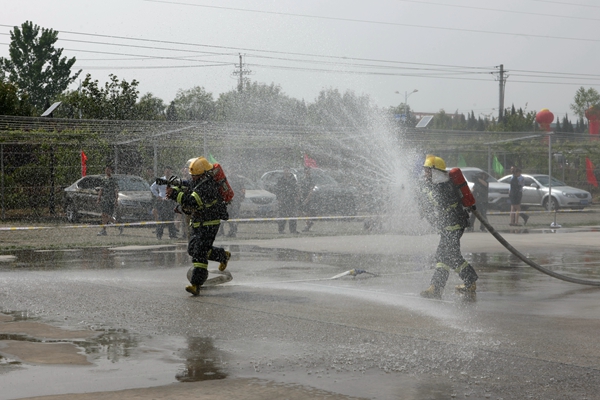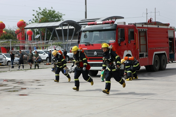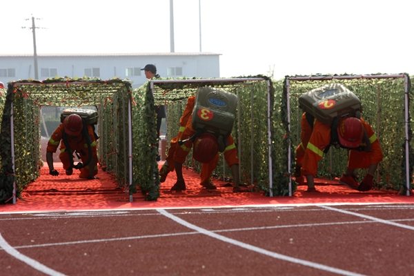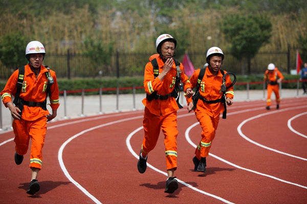 在消防模擬救災(zāi)比賽中,隨著指令發(fā)出,警笛鳴響,參賽的救護(hù)隊(duì)員備齊裝備、快速集結(jié),風(fēng)馳電掣地登上救援車輛迅速趕赴救援現(xiàn)場(chǎng),在團(tuán)結(jié)奮戰(zhàn)和熟練操作中相繼完成火災(zāi)救援處置任務(wù)。
