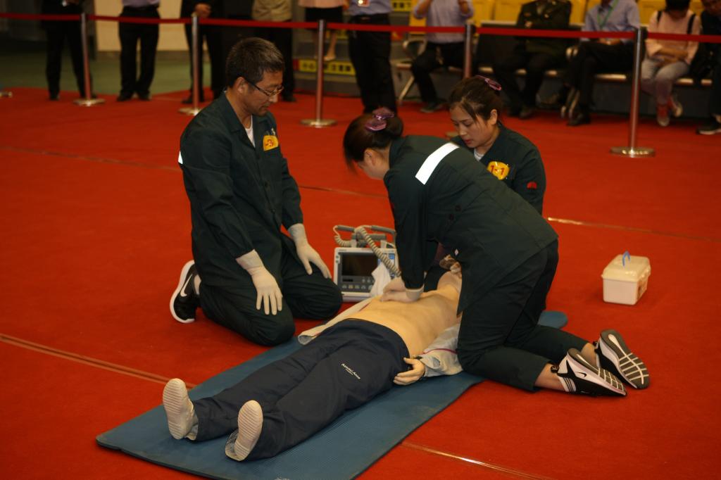 24日當(dāng)天的競(jìng)賽共設(shè)置了救護(hù)綜合體能競(jìng)賽、醫(yī)療綜合體能競(jìng)賽、救護(hù)醫(yī)療急救競(jìng)賽、救護(hù)呼吸器操作比賽、消防模擬救災(zāi)比賽、醫(yī)療理論考試、救護(hù)理論考試等項(xiàng)目。