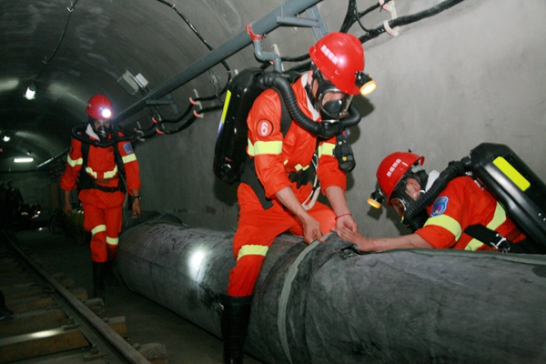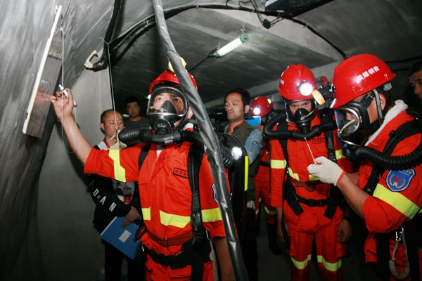 25日,模擬井下救災(zāi)項(xiàng)目拉開(kāi)戰(zhàn)幕,競(jìng)技隊(duì)員需在60分鐘內(nèi),完成氣體檢測(cè)、頂板檢測(cè)、風(fēng)量檢測(cè)、井下滅火、恢復(fù)通風(fēng)、災(zāi)區(qū)探查、搜救失蹤人員、解救遇險(xiǎn)人員等任務(wù),同時(shí)對(duì)災(zāi)區(qū)情況進(jìn)行詳細(xì)記錄、標(biāo)注,及時(shí)準(zhǔn)確地將信息反饋給救災(zāi)指揮部,并安全地返回到井下基地。