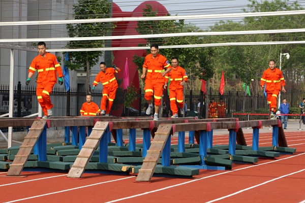 上午8時(shí)整,綜合體能賽拉開(kāi)戰(zhàn)幕。參賽隊(duì)員秩序井然、精神抖擻,6人一組,在完成高空爬繩后,迅速背起近二十公斤的呼吸器進(jìn)行千米奔跑,并要在途中穿越長(zhǎng)15米的獨(dú)木橋,爬過(guò)20米的低巷,到達(dá)終點(diǎn)完成綜合體能競(jìng)技的各項(xiàng)內(nèi)容。競(jìng)賽中,各參賽隊(duì)的隊(duì)員以有力的攀繩動(dòng)作,越橋的矯健身影,鉆巷的快捷熟練,奔跑的健步如飛,彰顯著救護(hù)隊(duì)員的奮斗精神和戰(zhàn)斗風(fēng)貌。