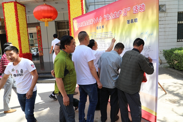 在安全咨詢?nèi)栈顒蝇F(xiàn)場,全體職工進行了“防風險、除隱患、遏事故”安全宣誓,許下了對安全保障的承諾,并在“防風險、除隱患、遏事故”宣傳橫幅上進行了安全承諾簽名,樹立主動搞好安全的信心和決心。