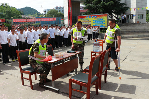 為使“安全宣傳咨詢?nèi)铡被顒舆_到增強職工安全意識的目的,活動首次采用了“傷殘體驗”這種安全警示教育新模式,通過模擬因違章造成的手臂、腿部等部位受傷,讓廣大干部職工觀看傷殘人員日常的一系列生活場景,切身體會受傷后所帶來的生活上的不便,深刻認識到“三違”帶來的嚴重后果。激揚的歌曲聲響起,安全協(xié)管員為大家送上了安全文藝演出節(jié)目,期間穿插進行的安全知識有獎問答環(huán)節(jié)將現(xiàn)場氣氛推向高潮?!巴咚箓鞲衅麟x頂板和側(cè)幫應(yīng)該多少距離?”“井下低壓供電三大保護是什么?”,職工紛紛舉手搶答,在獲得小禮品的同時進一步提升了安全知識。隨后,全體干部職工列隊觀看了事故案例警示教育宣傳牌板,人們不時停下腳步或沉思、或討論,體會“安全高于一切”的意義。會場還設(shè)立了咨詢臺,發(fā)放了安全宣傳資料500余份,向職工解答了安全生產(chǎn)法律法規(guī)、工傷保險條例、職業(yè)病危害及防治、安全操作細則、防火防爆、突發(fā)事件應(yīng)急避險、居民安全常識等知識。