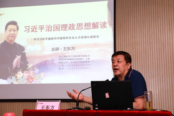 隨后,學(xué)員們認(rèn)真聆聽(tīng)了南泥灣干部學(xué)院院長(zhǎng)王東方所做的題為《習(xí)近平新時(shí)代中國(guó)特色社會(huì)主義思想解讀》專(zhuān)題講座,他從中國(guó)特色社會(huì)主義基本含義、歷史使命、科學(xué)內(nèi)涵、戰(zhàn)略布局、具體舉措等,深刻闡釋了習(xí)近平新時(shí)代中國(guó)特色社會(huì)主義思想的時(shí)代背景、科學(xué)體系、精神實(shí)質(zhì)和實(shí)踐要求,使所有學(xué)員受益匪淺。