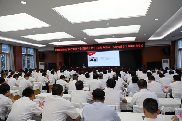 為進(jìn)一步學(xué)習(xí)宣傳貫徹習(xí)近平新時(shí)代中國(guó)特色社會(huì)主義思想和黨的十九大精神,扎實(shí)推進(jìn)習(xí)近平新時(shí)代中國(guó)特色社會(huì)主義思想走深走實(shí)。7月19日,陜煤集團(tuán)宣講團(tuán)成員,集團(tuán)宣傳部部長(zhǎng)、新聞中心主任梅方義到公司開(kāi)展習(xí)近平新時(shí)代中國(guó)特色社會(huì)主義思想和黨的十九大精神常態(tài)化宣講。公司在家領(lǐng)導(dǎo),各副總,公司機(jī)關(guān)各部門負(fù)責(zé)人,公司所屬各單位副處級(jí)以上領(lǐng)導(dǎo)干部共同聆聽(tīng)了此次講座。