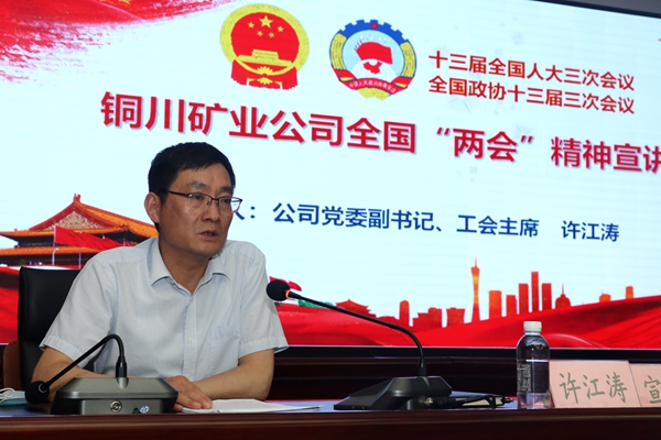 宣講中,許江濤從全國“兩會”的基本情況、會議主要精神、習(xí)近平總書記在“兩會”上發(fā)表的重要講話精神、陜西省代表團(tuán)兩會期間的主要活動和履職情況等方面,結(jié)合自身學(xué)習(xí)體會思考對“兩會”精神進(jìn)行了全面系統(tǒng)的宣講解讀。整場宣講主題鮮明、思路清晰,內(nèi)容豐富、重點突出,對于以“兩會”精神統(tǒng)一黨員干部的思想行動,凝聚奮進(jìn)力量,匯聚創(chuàng)業(yè)動能,引領(lǐng)推動企業(yè)改革發(fā)展和促進(jìn)“兩會”精神在銅川礦區(qū)的落地落實起到了積極地推動作用。